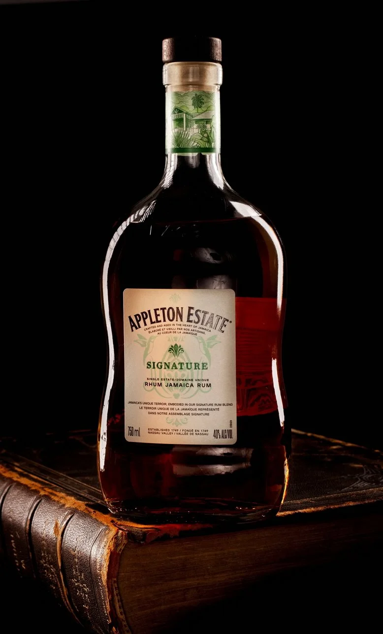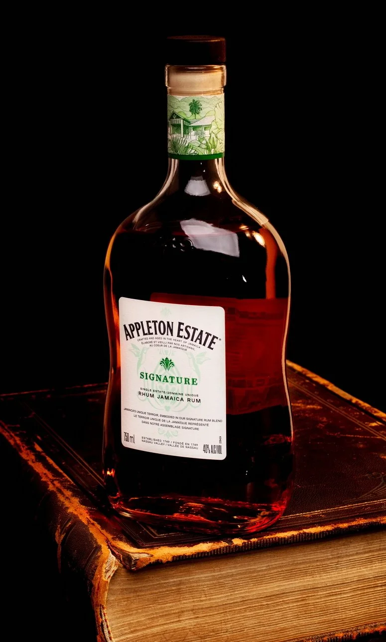 A softbox was boom mounted and angled overhead of the bottle to provide greater exposure on the front of the bottle. While this gave a bit more color to the bottle and its contents, the highlight it gave the bottle didn’t accentuate the curve and shape of the glass, and gave an awkward looking highlight.